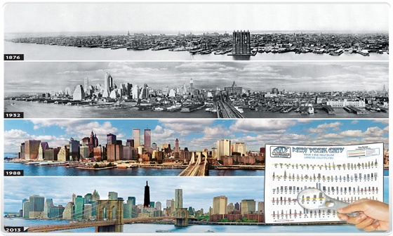 3. Třetí puzzle/vrstva - doplnění pámátek a budov (Praha od roku 870, Řím od roku 497 př.n.l, Londýn - 1078, Paříž - 1345, New York - 1812, USA - 1450 + přírodní úkazy staré tisíce let). Pokládá se na druhou vrstvu.