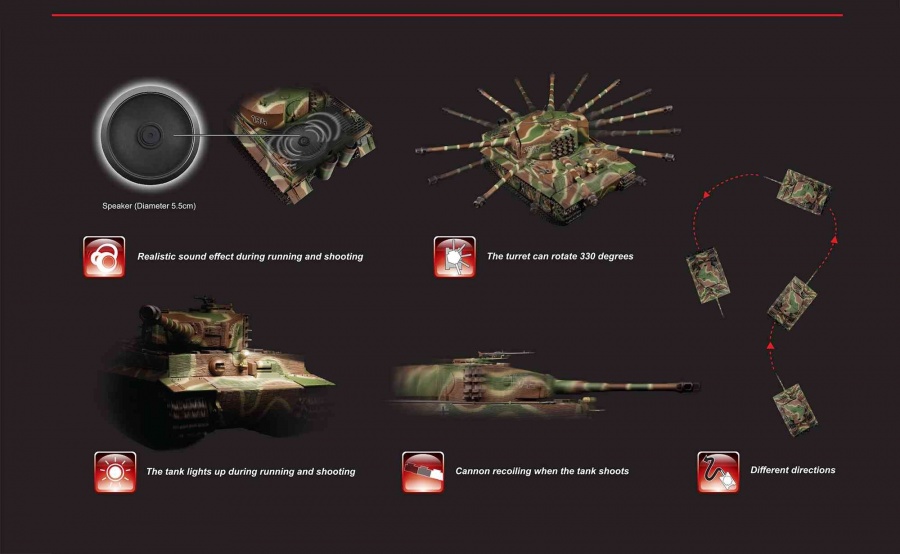 R/C tank v měřítku 1/24 střílí kuličky až na vzdálenost 25 metrů!